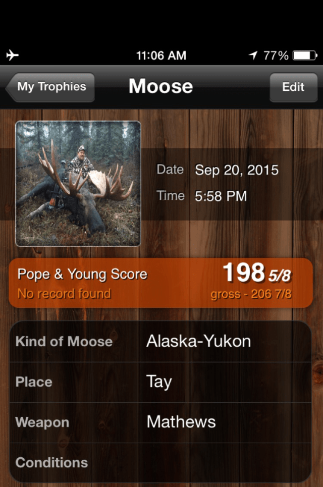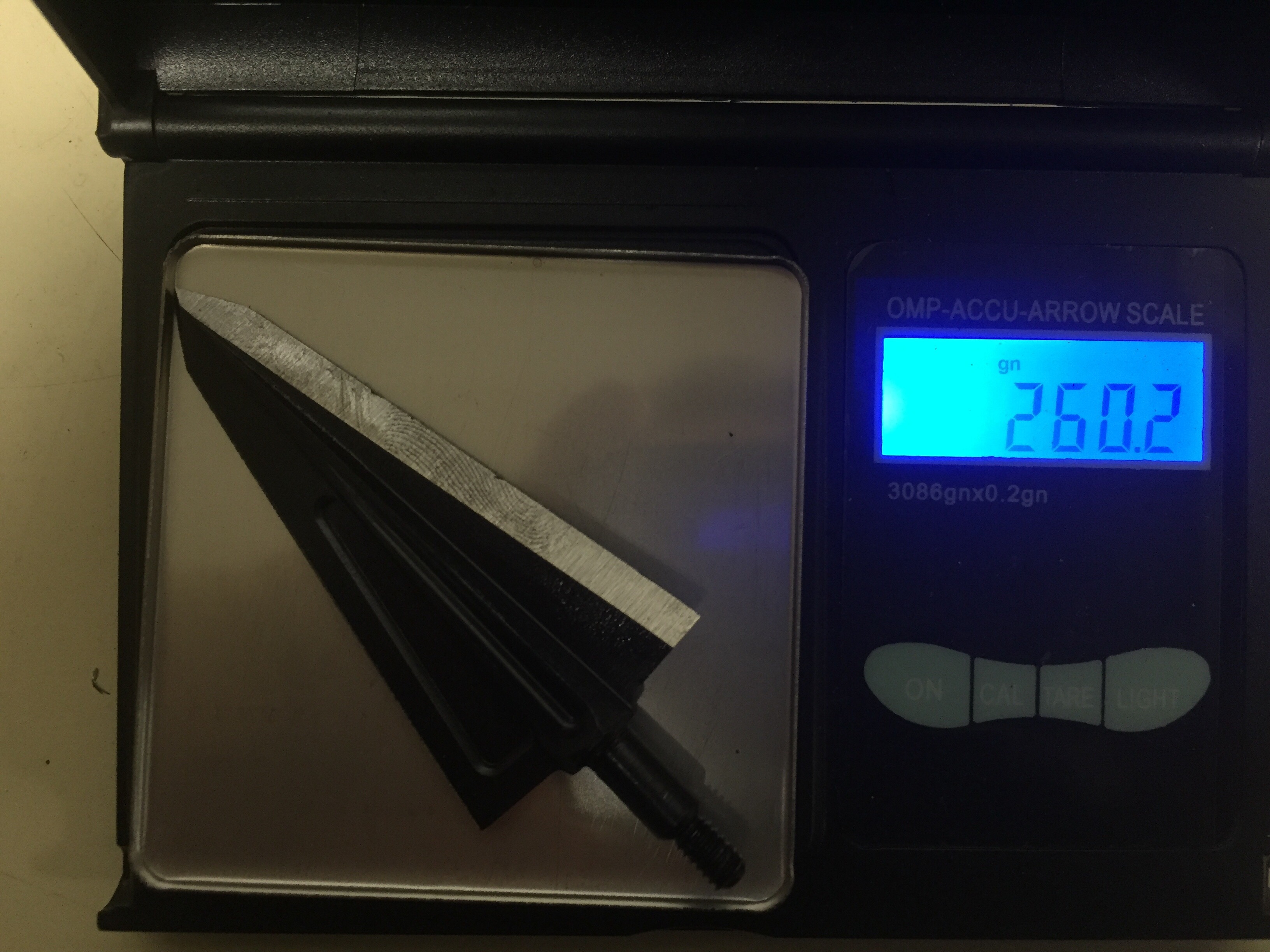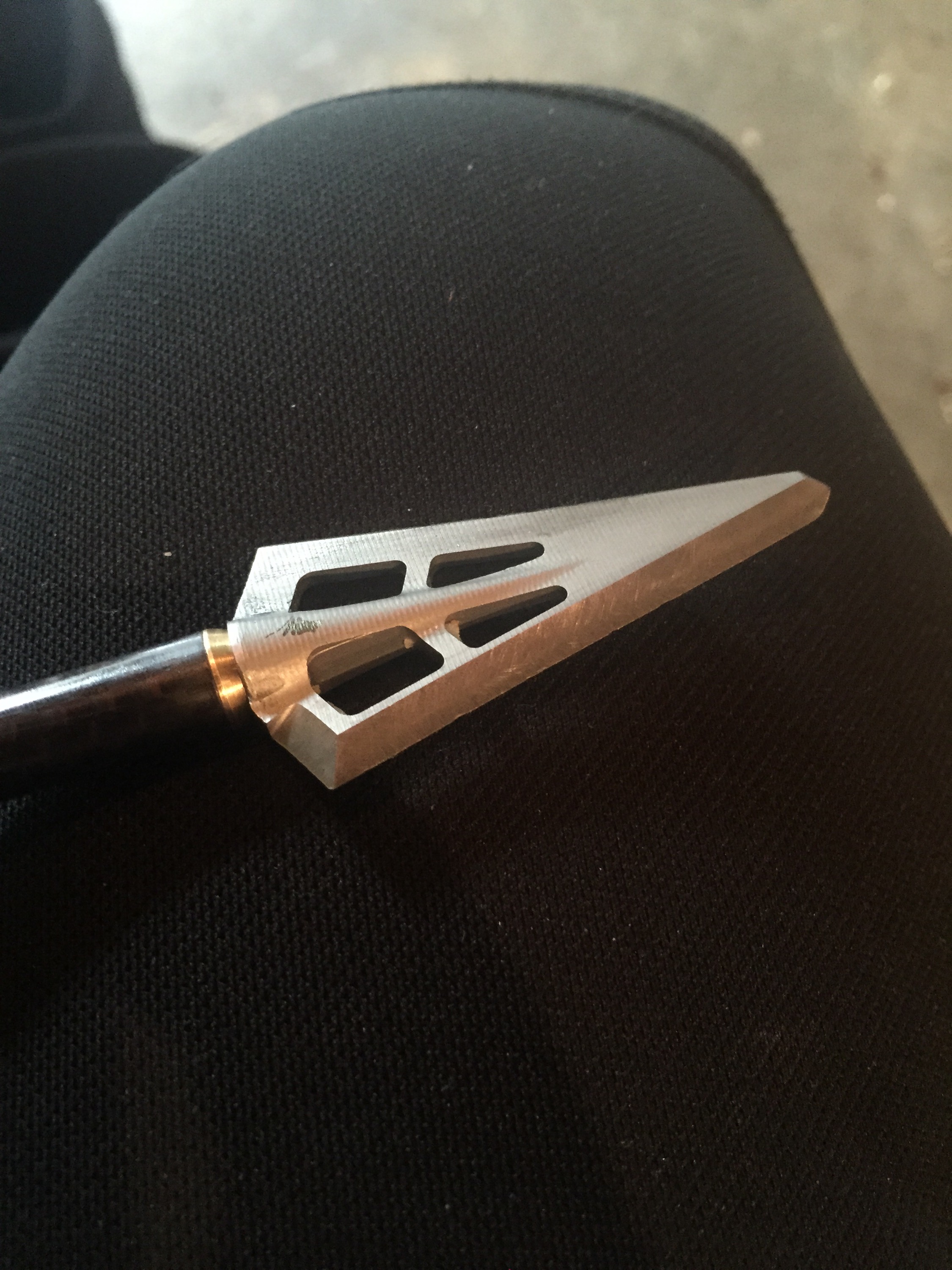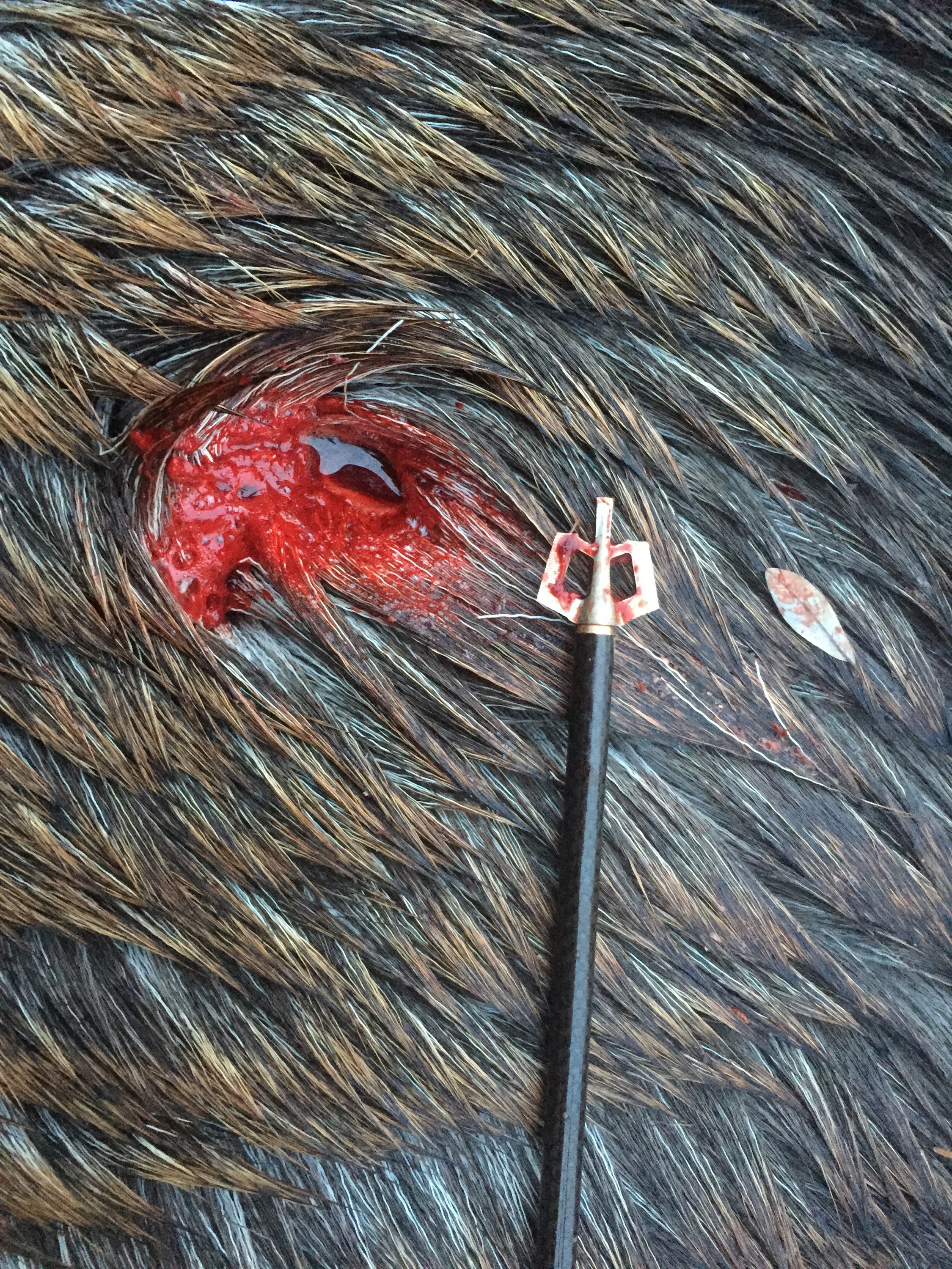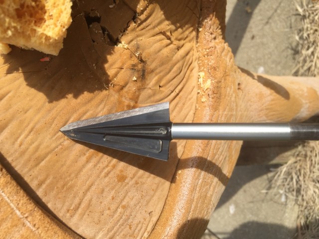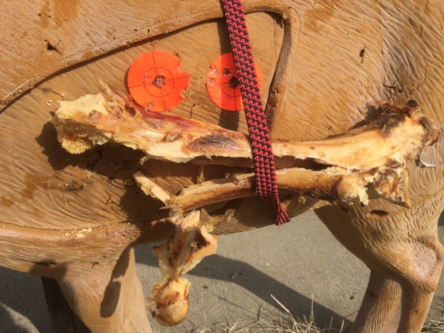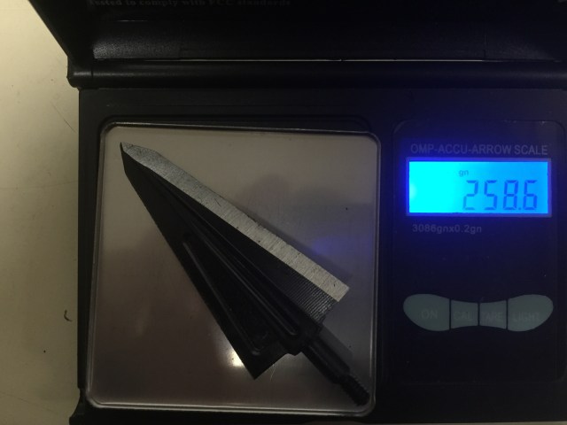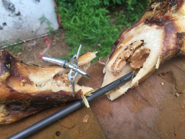 I was using a Mathews Triax set to 70lbs at 28″. My arrow was a Easton axis 260 with a 50 grain brass insert, 150 grain cutthroat broadhead, 4 Gateway Razer vanes, Firenock, and a 2″ footer for a total arrow weight of 550 grains. Ontarget2 calculated approximately 260 fps, 80 K.E., .630 momentum and 19% FOC. I should have used a 250 grain head but hind sight is 20/20 as you will see later on in the story.